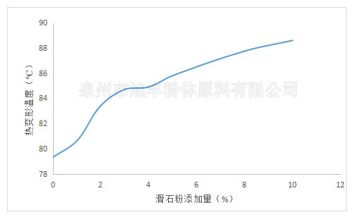 從圖中可以看出,滑石粉對塑料材料熱變形溫度的影響較為明顯,可以有效的提高各種塑料的熱變形溫度,從而增加塑料的耐熱性。