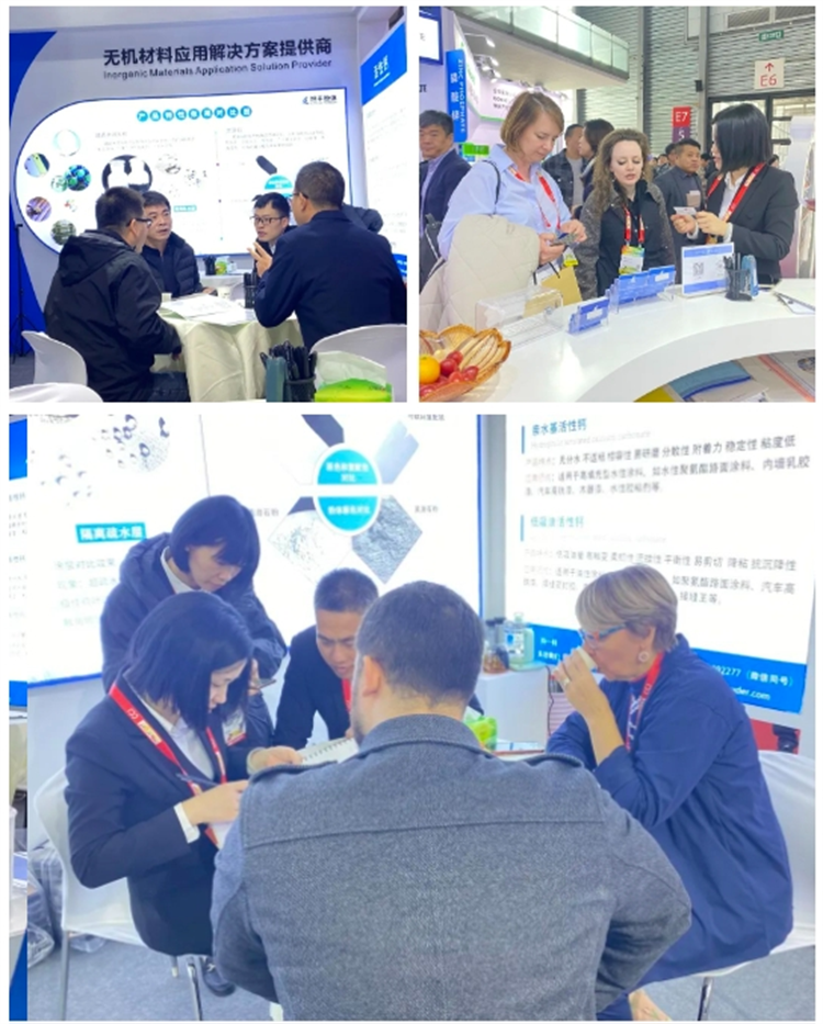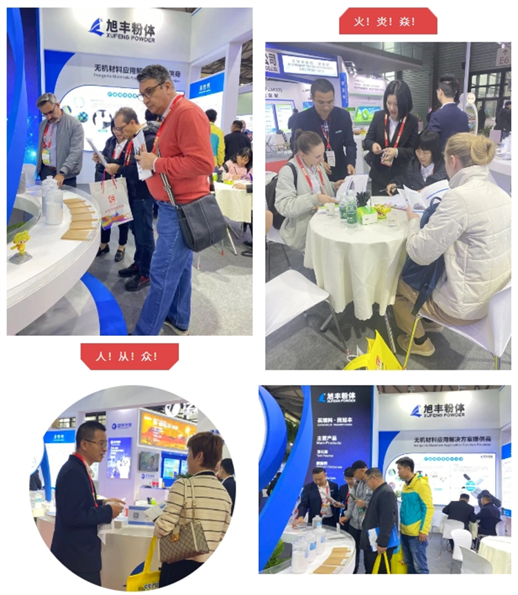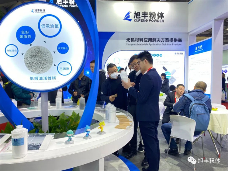 旭豐粉體本次展會依然充滿“新”意,以穩重藍為主色調,展位造型簡約不失大氣,設有直觀的產品展示區,并以專業的知識和服務,吸引了行業大咖駐足參觀和互動交流!