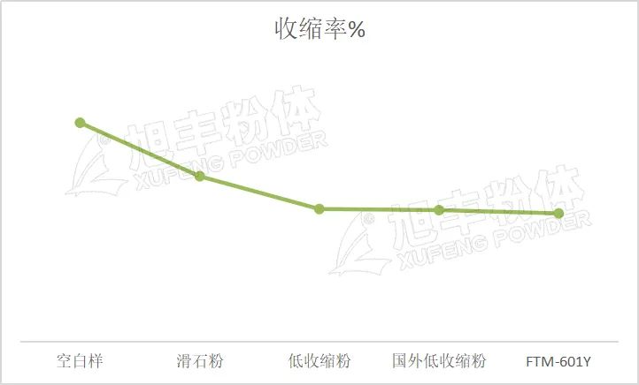 從上圖可以看出,F(xiàn)TM-601Y較添加滑石粉體系,具有較低的收縮率,同時(shí)相對(duì)純PP樹脂來說,收縮率也有大幅度的下降,這說明FTM-601Y在PP中具有良好的尺寸穩(wěn)定性。