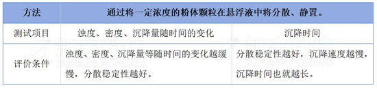 無機粉體表面改性的目的之一是提高在體系中的分散穩定性。因此,測定表面改性后粉體在相應分散介質或分散相中的分散穩定性可以表征和評價粉體表面改性的效果。