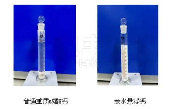 以下為兩款碳酸鈣在水中24h沉降測試圖。