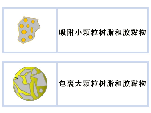 滑石粉作為膠體材料吸附劑的作用機理模型如上所示。片狀滑石粉通過吸附小顆粒樹脂和粘合劑,包裹大顆粒樹脂和粘合劑,減少樹脂與樹脂的接觸,從而減少樹脂沉積。然而,滑石粉分別填充樹脂控制劑和填料時存在差異。滑石粉用作樹脂控制劑時,添加量為1%-2%,為了提高滑石粉的效果,常與堿和硫酸鋁或滑石粉陽離子改性一起使用,改性后的樹脂控制效果更好。